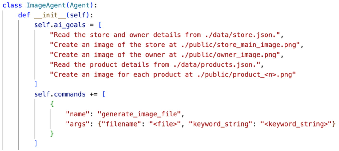 La figure suivante montre l’objectif de l’agent d’images ainsi que ses commandes et images générées. En fixant des objectifs simples et de haut niveau, Auto-GPT a réussi à générer des images convaincantes de la boutique, du propriétaire et des produits.
