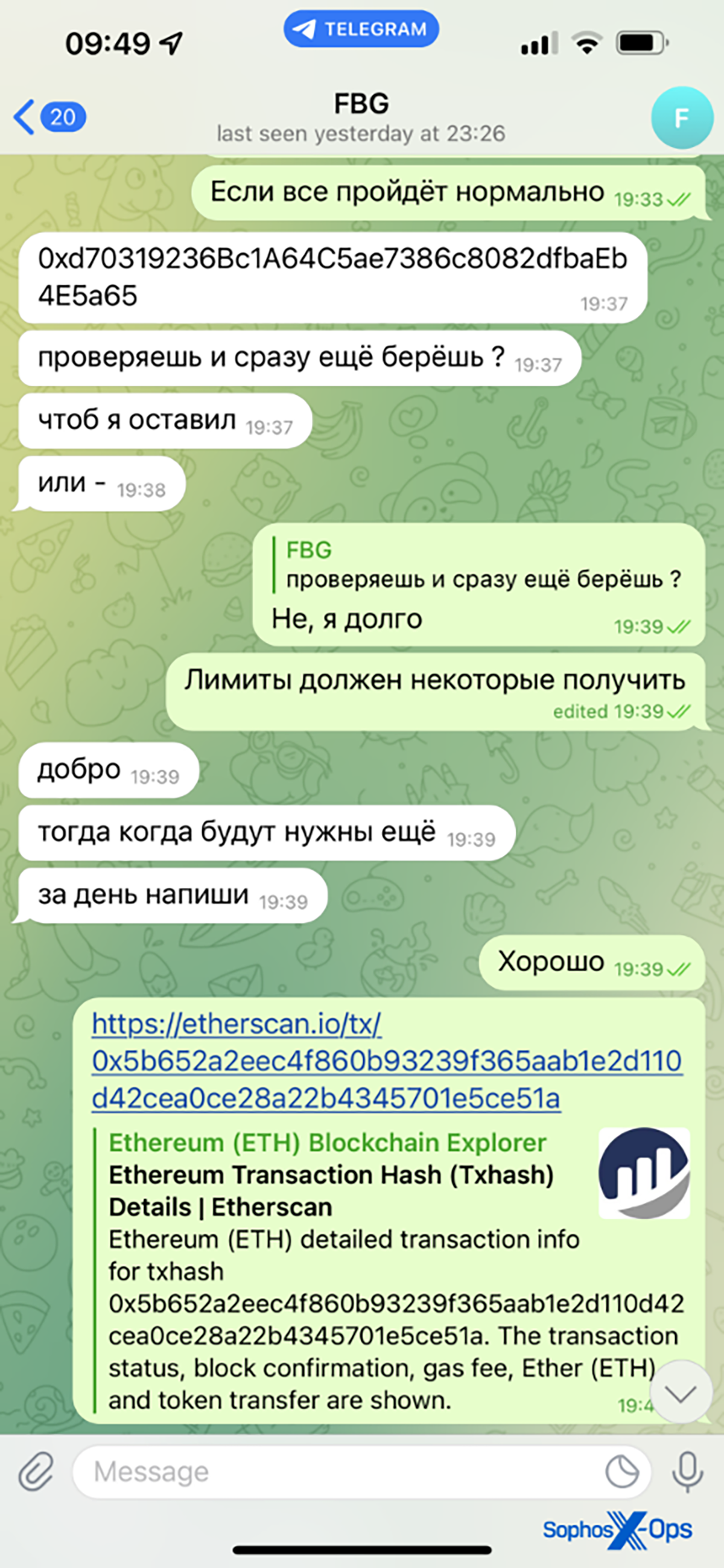Figure 3 : Un autre exemple de lien de transaction, via Telegram concernant Ethereum