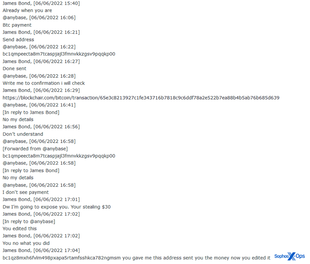 Cette tendance contraste avec d’autres domaines concernant ces marketplaces cybercriminelles, où la sécurité opérationnelle est souvent très efficace. Peut-être que les victimes d’escroquerie partent du principe que personne ne prête attention aux salles d’arbitrage, ou bien elles sont tellement agacées d’avoir été arnaquées que leurs précautions habituelles passent au second plan.