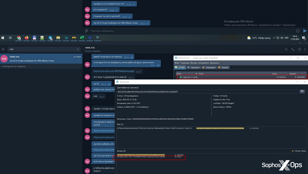 Les marketplaces cybercriminelles servent souvent de vitrines publicitaires, les négociations et les ventes ayant généralement lieu sur d’autres canaux, tels que Telegram, Tox, les DM de forum, etc. Les vendeurs et les acheteurs s’en tiennent à cette règle empirique pour des raisons de sécurité opérationnelle. Mais lorsqu’il s’agit de plaintes pour escroquerie, ces règles sont parfois ignorées. Nous avons vu de nombreuses captures d’écran de négociations et de ventes, avec des adresses de crypto-monnaie et des liens vers des transactions, qui pourraient être très utiles lors d’investigations portant sur des incidents ou des acteurs malveillants spécifiques (individus ou réseaux). Bien sûr, les acteurs malveillants peuvent toujours appliquer des mesures d’anonymisation à leurs transactions, mais c’est mieux que rien.