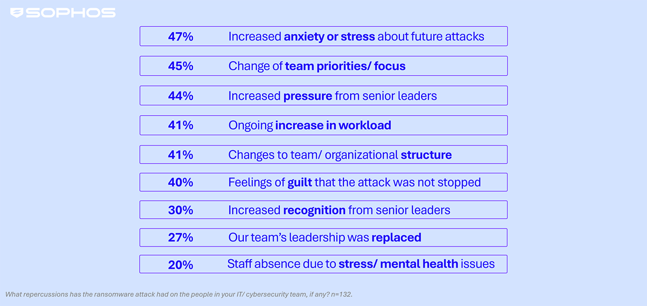 Les ransomwares ont un impact humain considérable, engendrant stress et anxiété au sein des équipes IT/Cybersécurité du secteur