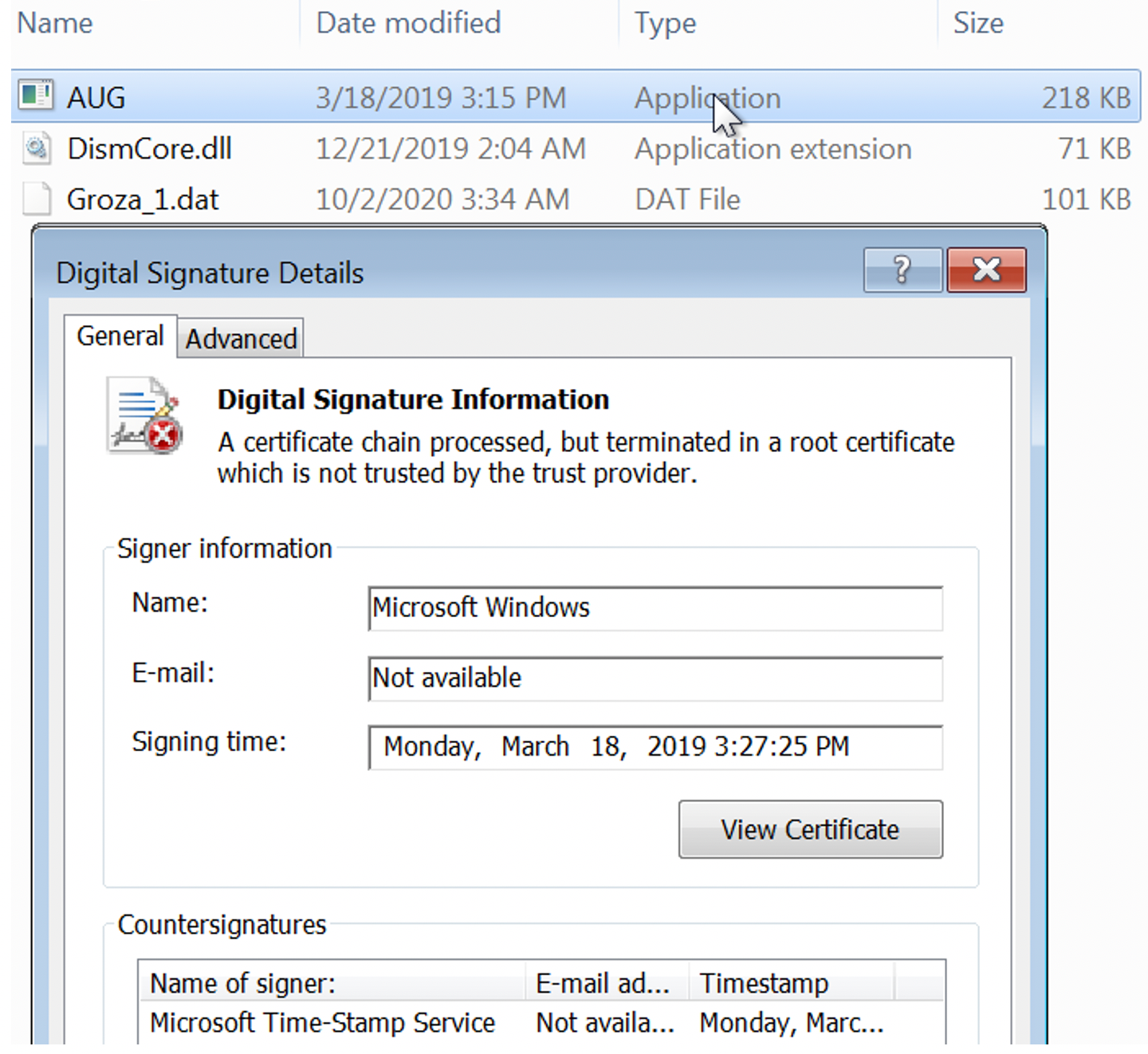 AUG.execlean loader (renamed Microsoft DISM.EXE)