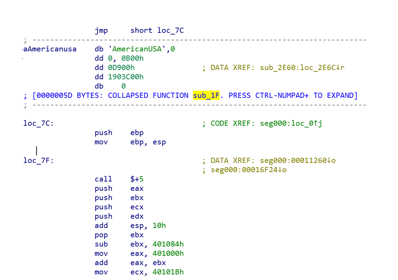 In both of these cases, the payload is stored in the file named Groza_1.dat. The content of that file is a PE loader shellcode, which decrypts the final payload, loads into memory and executes it. The first layer of the loader code contains unused string: AmericanUSA.