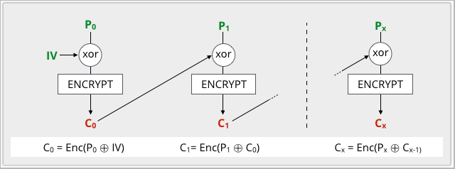 Remember that we’re using CBC to prevent repeating patterns in the input from repeating in the output as well.