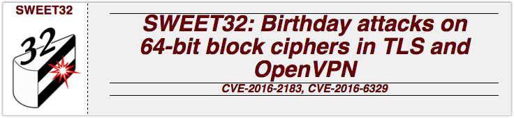 (Now you know where the name Sweet32 comes from, because 32 is half of 64, and 3DES and Blowfish have 64-bit blocks.)