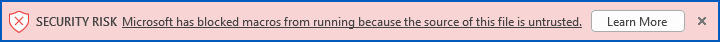 For macros in files obtained from the internet, users will no longer be able to enable content with a click of a button. A message bar will appear for users notifying them with a button to learn more. The default is more secure and is expected to keep more users safe including home users and information workers in managed organizations.