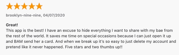 Then again, you can also use it to privately break up with your smiley-rainbow-end, as pointed out in one 5-star review: