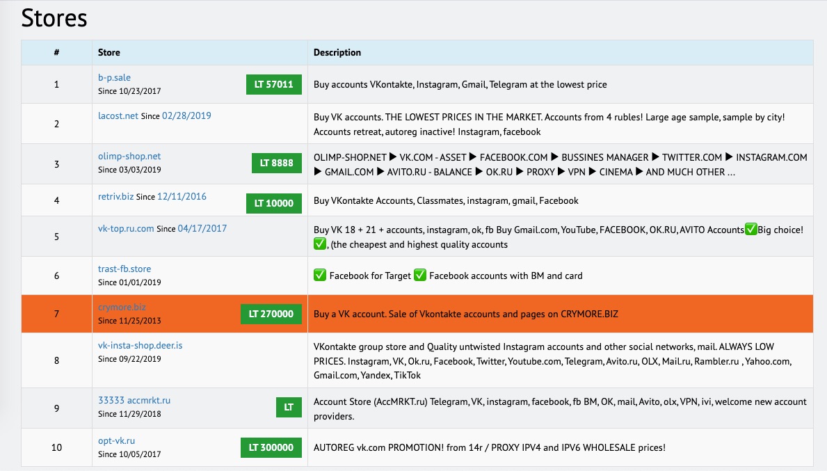 A criminal who wants to purchase from stores on the Deer.io platform can just use a web browser – there’s no fussing with tools to get to Dark Web hidden sites. The site even contains a search function, so buyers can search for hacked accounts from specific companies or PII from specific countries.
