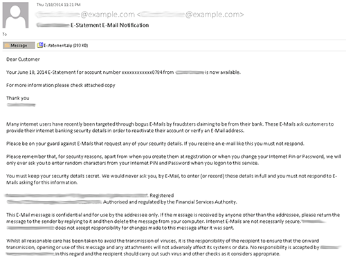 | 30bd87b5b1a4c151662e32ca0edd658b | MD5 hash | Cutwail spam attachment (E-statement.zip) |