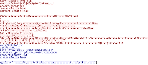 Figure 2. Gameover Zeus phone-home traffic over HTTP. (Source: Dell SecureWorks)