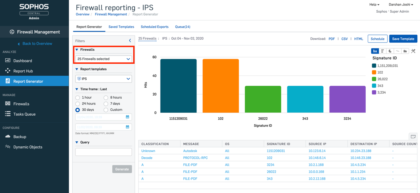 The latest update to Sophos Central Firewall Reporting (CFR) Advanced adds reporting across multiple devices, enabling you to easily get a holistic view into network activity and threats across your entire estate.