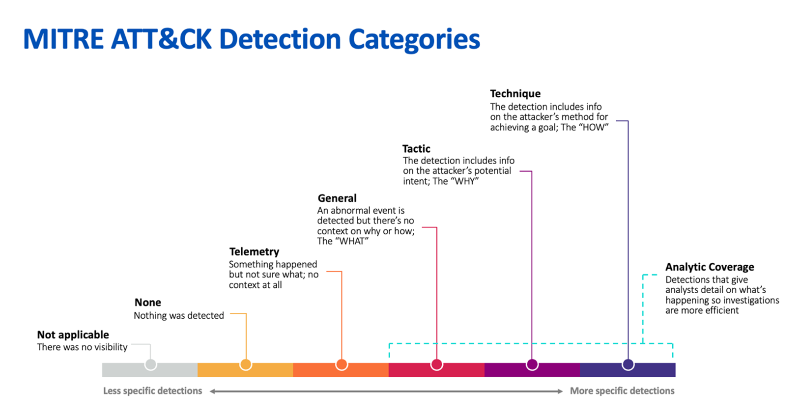 I rilevamenti classificati come generali, tattici o tecnici sono raggruppati sotto la definizione di “copertura analitica”, che misura la capacità dello strumento EDR di convertire la telemetria in rilevamenti di minacce utilizzabili.