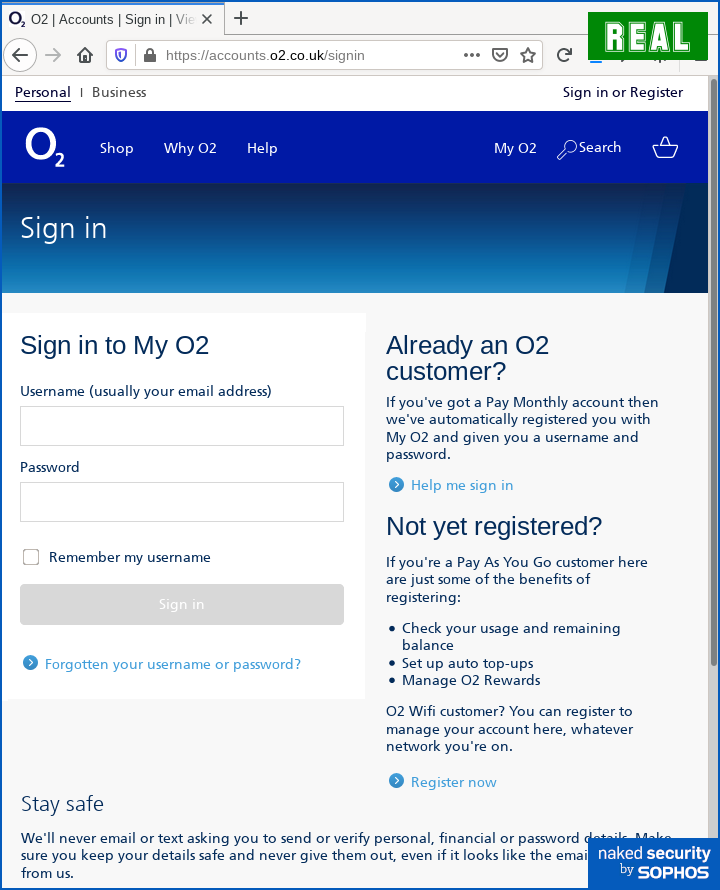 For O2, the genuine link right now seems to be https://accounts.o2.uk/signin, but don’t take our word for it, or anyone else’s word, for that matter.