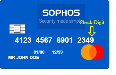 Per risolvere questo problema, Sophos DLP include cifre di controllo per verificare che un numero di 16 cifre sia effettivamente un numero di carta di credito valido. Tuttavia, anche dopo aver utilizzato la formula della cifra di controllo, c’è ancora una probabilità del 10 per cento che un pattern matching casuale possa provocare un falso positivo.