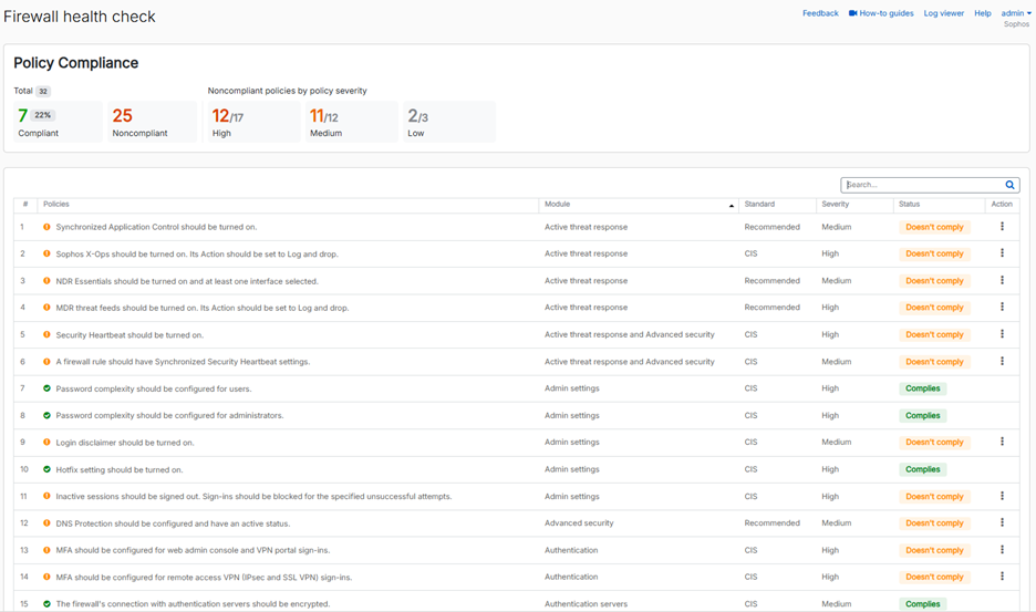 Questa nuova funzione analizza dozzine di impostazioni di configurazione del firewall e le confronta con i benchmark del CIS e altre best practice, fornendo informazioni immediate sulle aree potenzialmente a rischio.