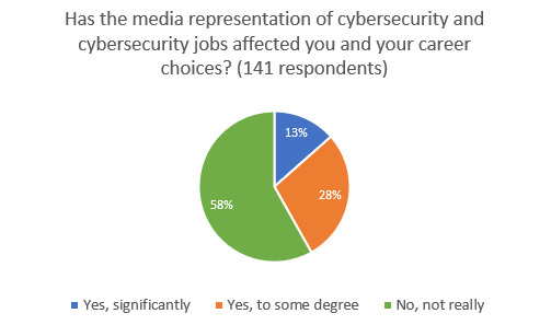 42% of respondents said the media representation of cybersecurity and cybersecurity jobs had affected them and their career choices, with 13% significantly affected.