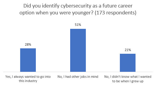 When it comes to the career experiences of summit attendees, just over a quarter (28%) of poll respondents say they always wanted to go into cybersecurity, while half (51%) had other jobs in mind.