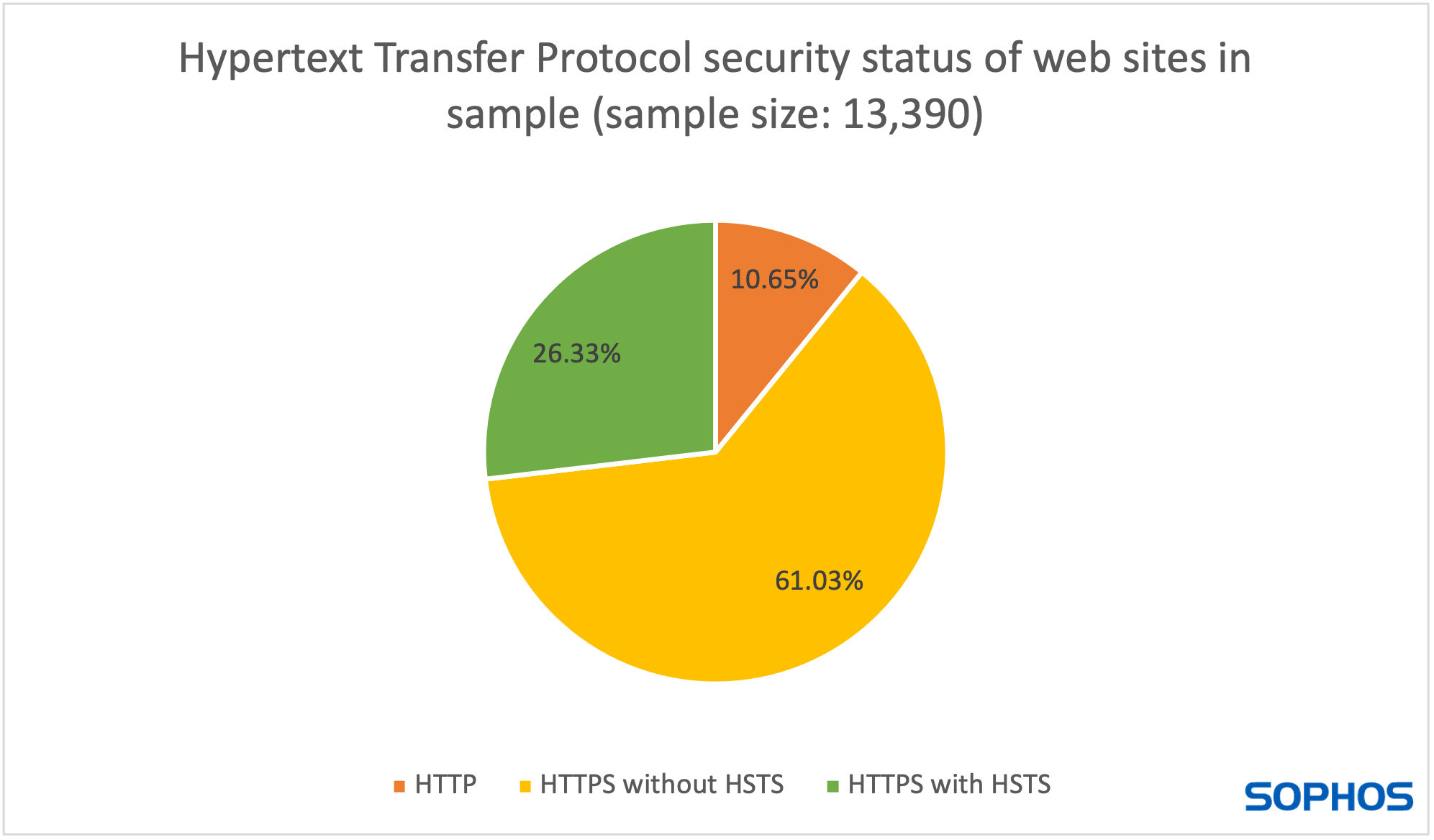 Nearly all of the sites that exhibited this behavior were using third-party authentication providers. This suggests they are not using HSTS, but their designated provider is. As mentioned above, that is not effective protection, but it is a good sign that authentication providers understand the value of using HSTS.