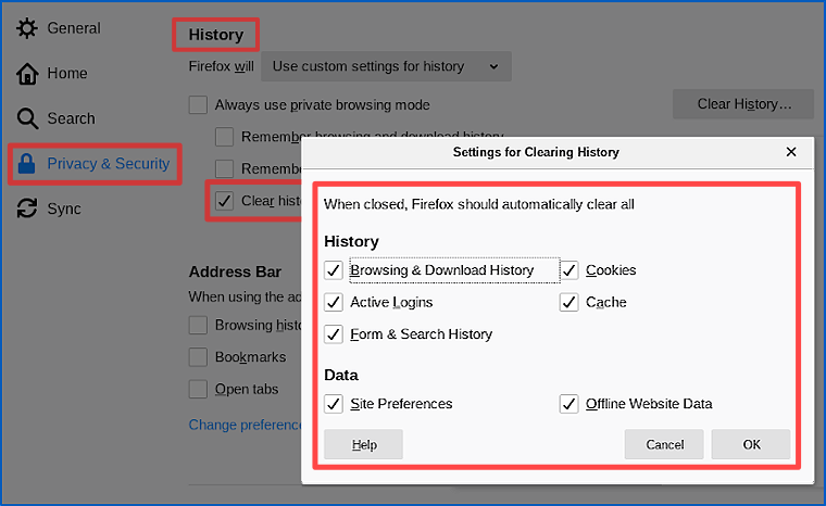 If you don’t mind logging back into all your websites every time you exit and reload Firefox (it’s a small hassle for a big security reward), we recommend telling Firefox to clean up every time you exit.