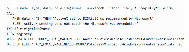 I clienti Sophos che hanno applicato queste modifiche possono utilizzare lo strumento Sophos Live Discover per cercare nella propria rete i computer che sono rimasti fuori dalla mitigazione con una query come questa: