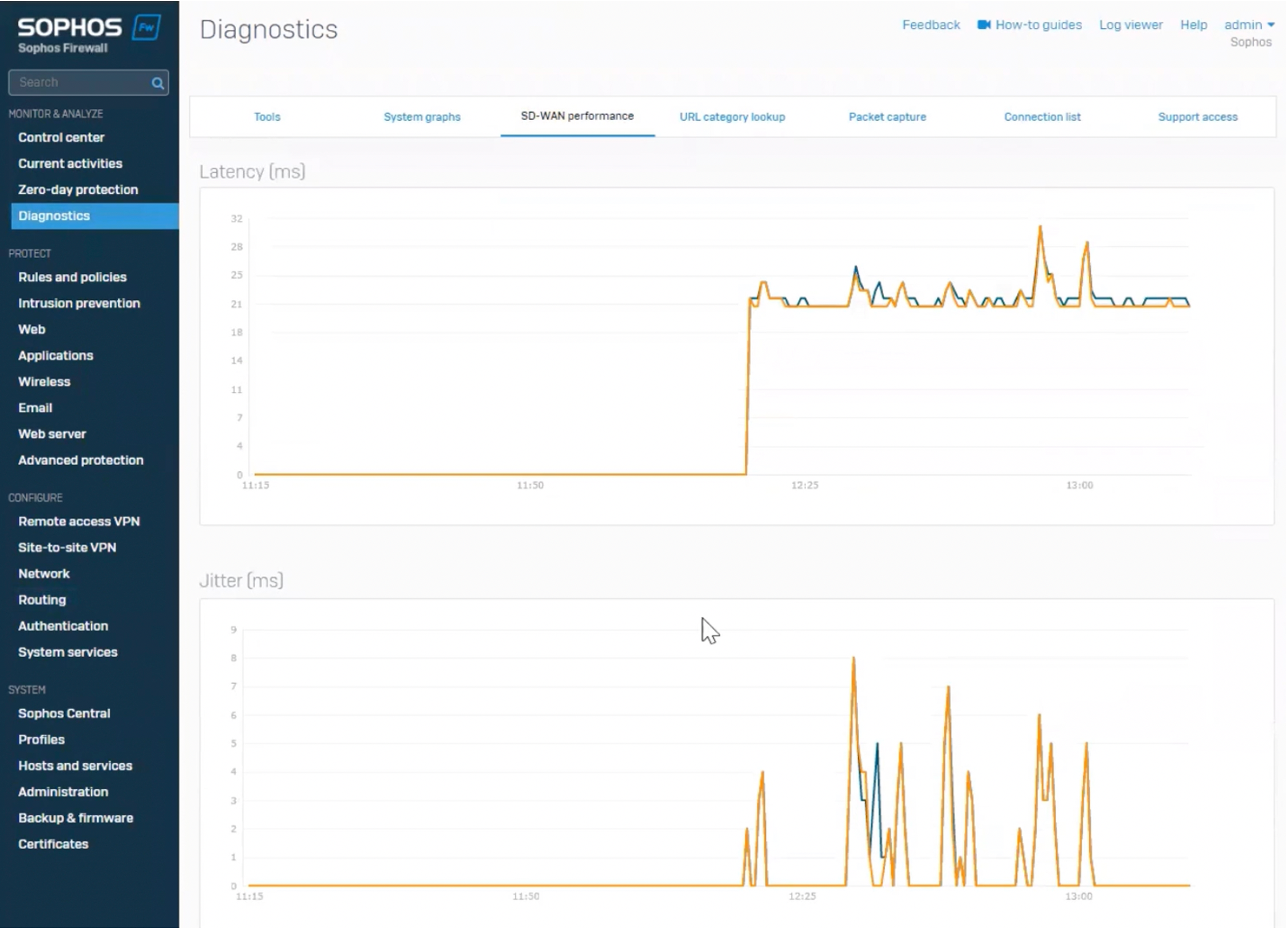 A new SD-WAN performance monitoring tool is now available under the diagnostics section of the product. You can monitor SD-WAN link performance in real-time with separate graphs for latency, jitter, and packet loss. Timeline selections for real-time, the last 24 or 48 hours, or over the last week or month are provided. These tools are extremely helpful when it comes to fine-tuning your custom SD-WAN routing strategies for your particular network.