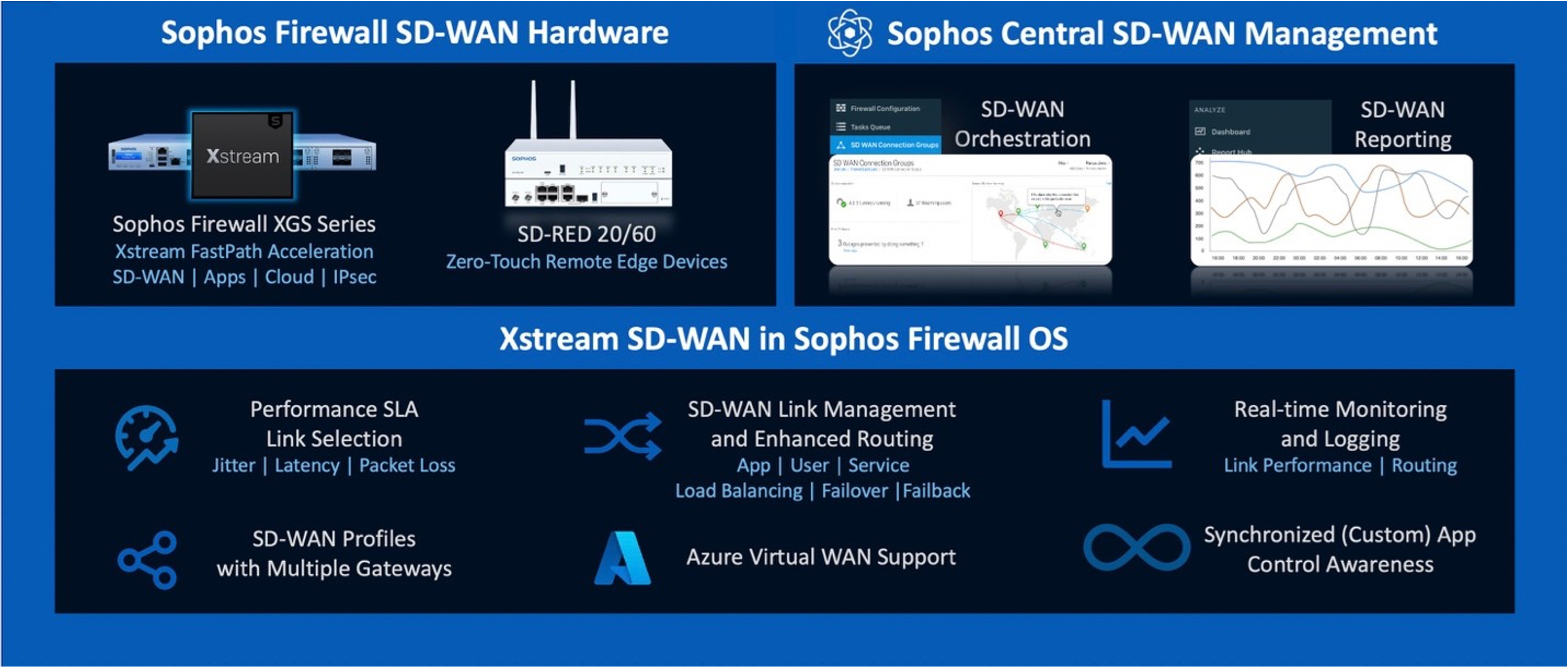 Xstream SD-WAN is a collection of powerful new capabilities in SFOS v19, that along with features in Sophos Central and our existing hardware line, deliver the best SD-WAN solution available in a Firewall today.