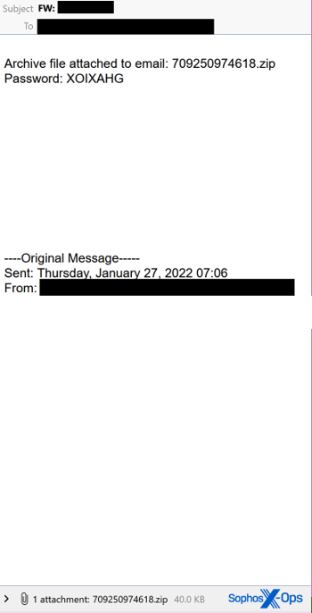 悪意のあるスパムメールを利用する攻撃では、攻撃者がパスワードで保護されたアーカイブを添付し、以下のスクリーンショットのようにメールの本文中にパスワードを記載していることがしばしばあります。