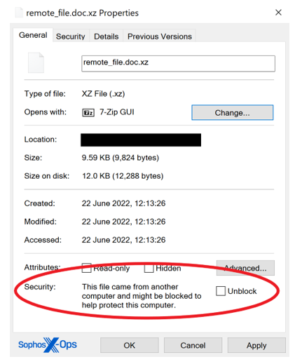Sophos X-Ops の研究者は、あまり一般的でない形式のアーカイブに対しても保護範囲を拡大することに尽力しています。また、MOTW のサポートを開始したアーカイブソフトウェアのベンダーもあり、これらのソフトウェアは展開したコンテンツにもタグを伝達します。