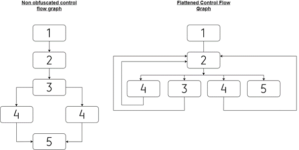 - 制御フローを難解にします。制御フローのディスパッチャーブロックが実装され、このブロックが次に実行されるブロックを決定します。そのため、ブロックを直接追うのが困難になります。