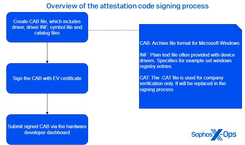 これらの要件を満たせば、ドライバー本体を含む CAB ファイルを作成し、EV 証明書で署名し、ダッシュボードに提出できます。