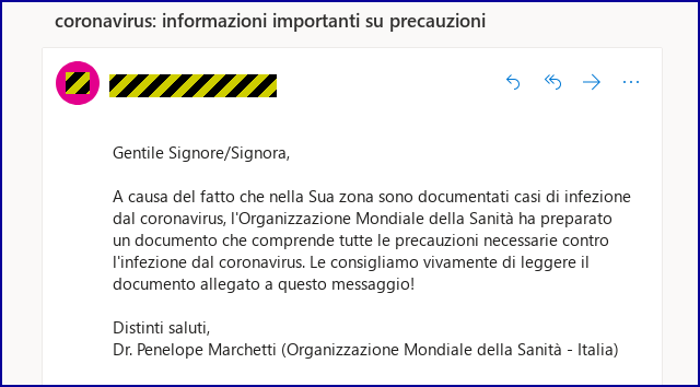 There's an attachment that you are "strongly recommended to read" on account of coronavirus infections in your area. Don't open it!