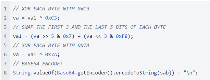 追加されたコードによって、この JAR ファイルは、攻撃者へのバックドアとして機能するようになります。さらに、このファイルはユーザーや管理者がデバイスにログインしようとするのを待ち、ログイン名とパスワードをリアルタイムで取得し、盗んだ認証情報を独自のアルゴリズムで暗号化して、デバイスの /tmp/ ディレクトリにあるファイルに書き出すという仕組みになっています。.