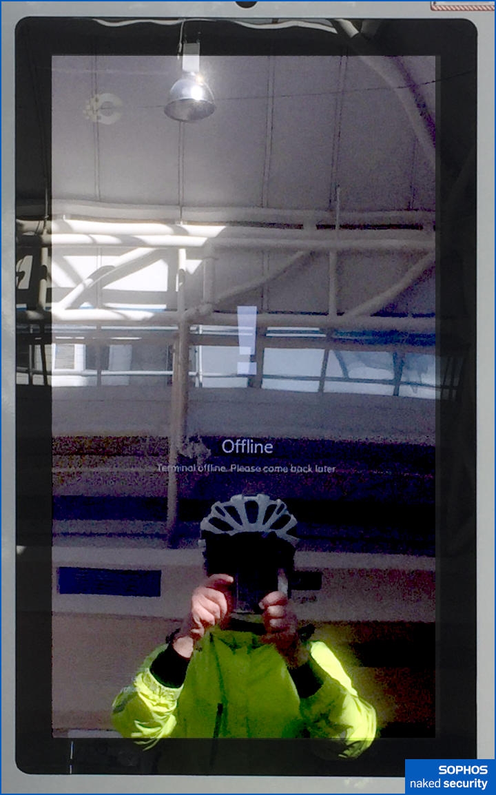 Here’s the closest device to Sophos HQ that we’re aware of (we made a quick trip to check its status during our lunch break); you can see that this one is still powered up, but dutifully spurning customers: