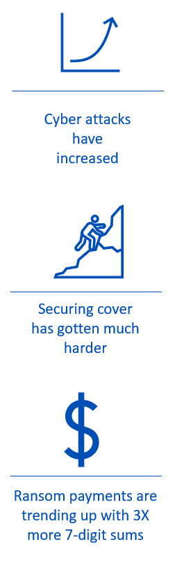 - 40% が、サイバー保険を提供する企業が少なくなったと回答。