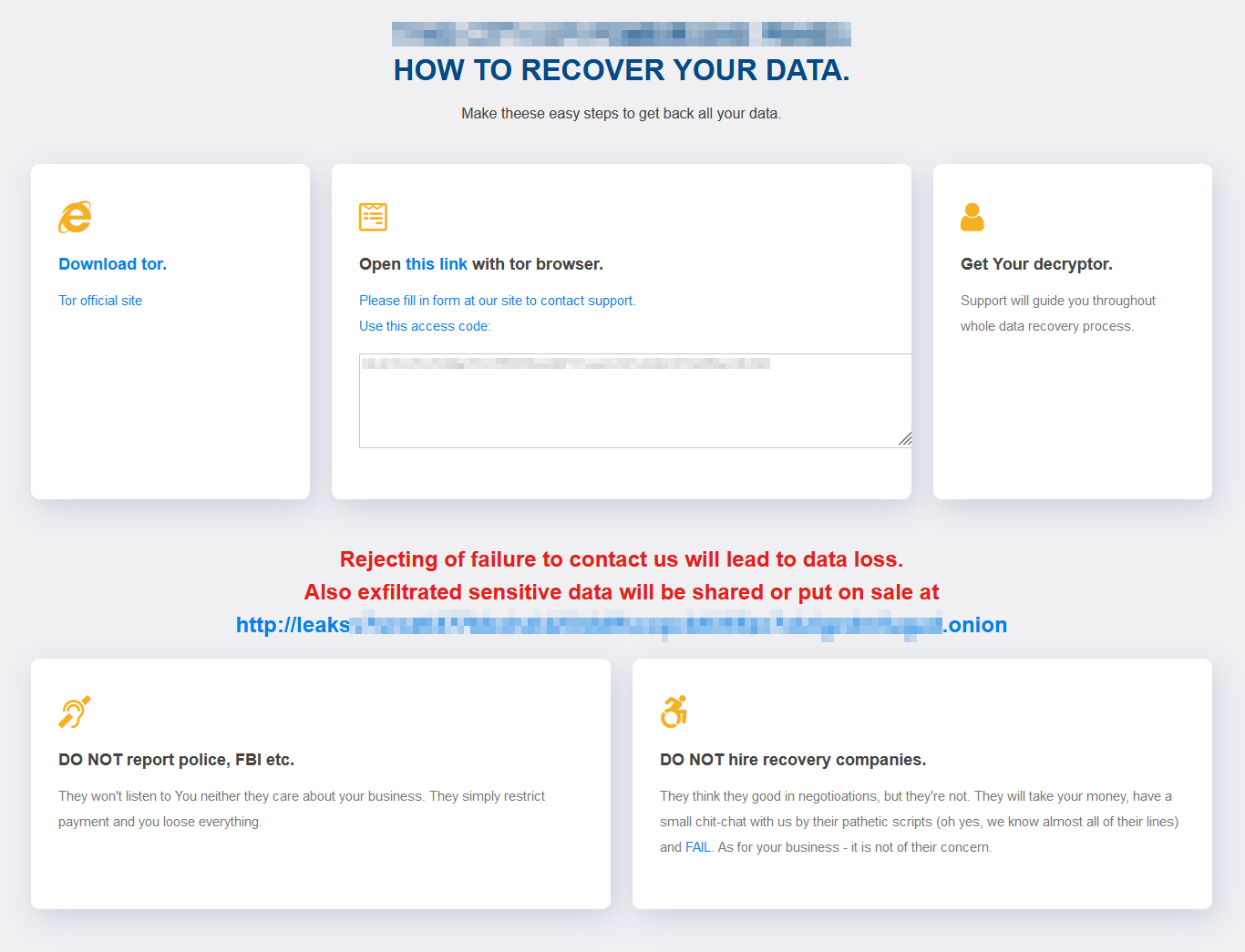 ランサムノートは、警察や FBI に連絡しないことや (「彼らは相手にしないか、興味を持たないでしょう」)、身代金交渉人やデータ復旧会社を利用しないこと (「彼らは交渉が上手いと自負しているようですが、実際はそうではありません。彼らはあなたのお金を受け取り、彼らの取るに足らないマニュアル (もちろん、私たちはその内容をほとんど知っています) に則って私たちとちょっとした世間話をし、失敗 (FAIL) するでしょう」) を警告しています。「失敗 (FAIL)」という単語は、ProPublica による 2019 年の調査報告から引用されたものです。この報告では、ランサムウェアによって失われたデータの復旧を専門にしているとするいくつかの会社が、実際にはただ身代金を支払っているだけだということが記されています。