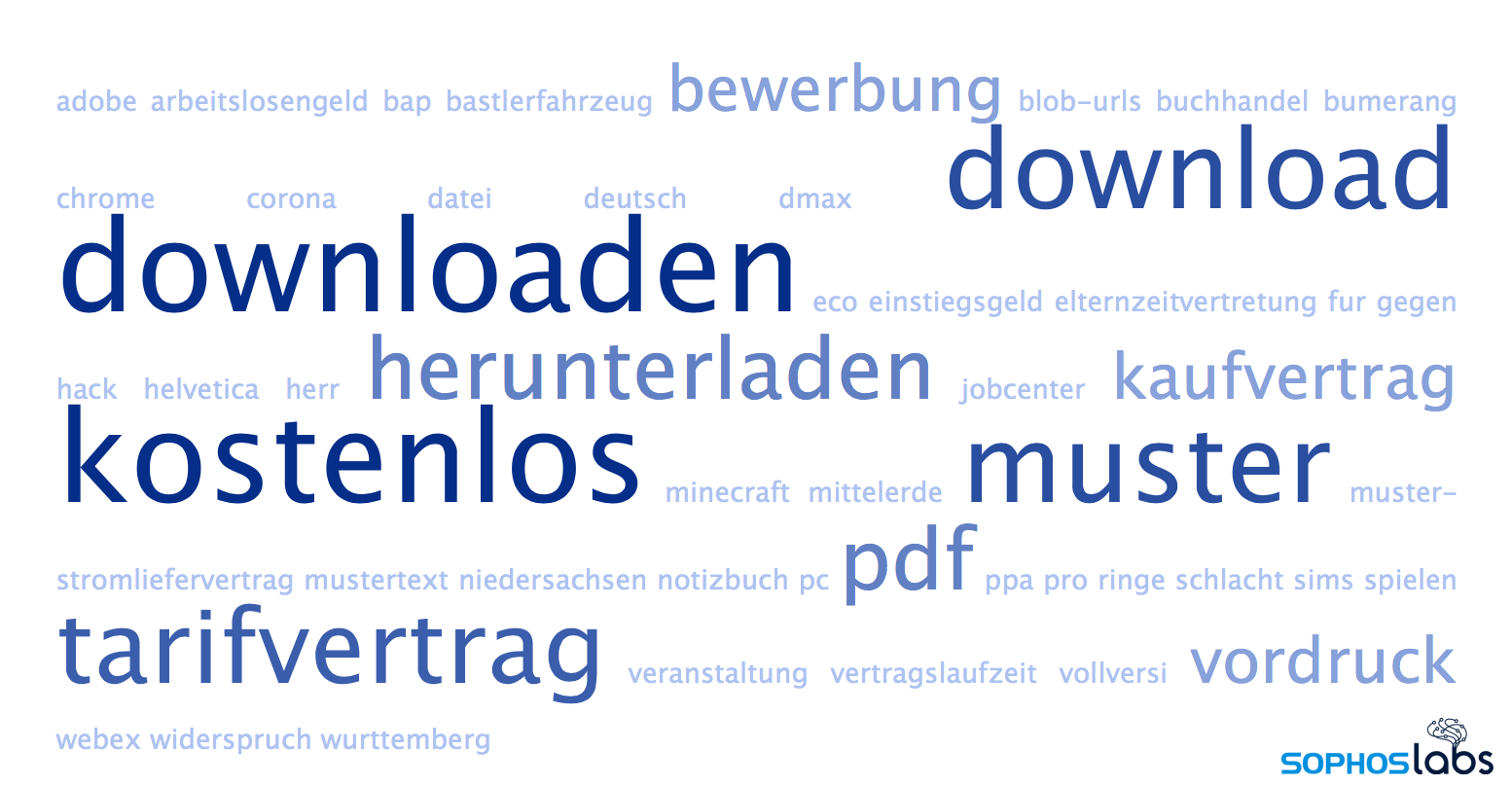 ファイル名をよく観察した結果、最も頻繁にポイズニングされた検索語が何であるかが解ってきました。下図はドイツで多くポイズニングされてい用語の例です。