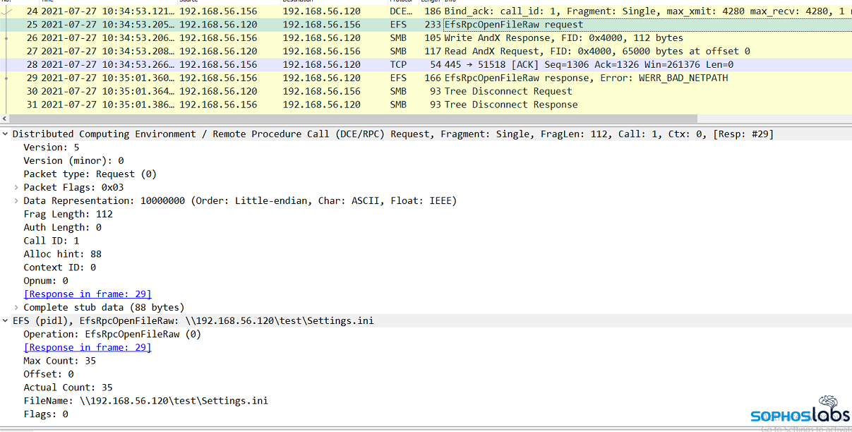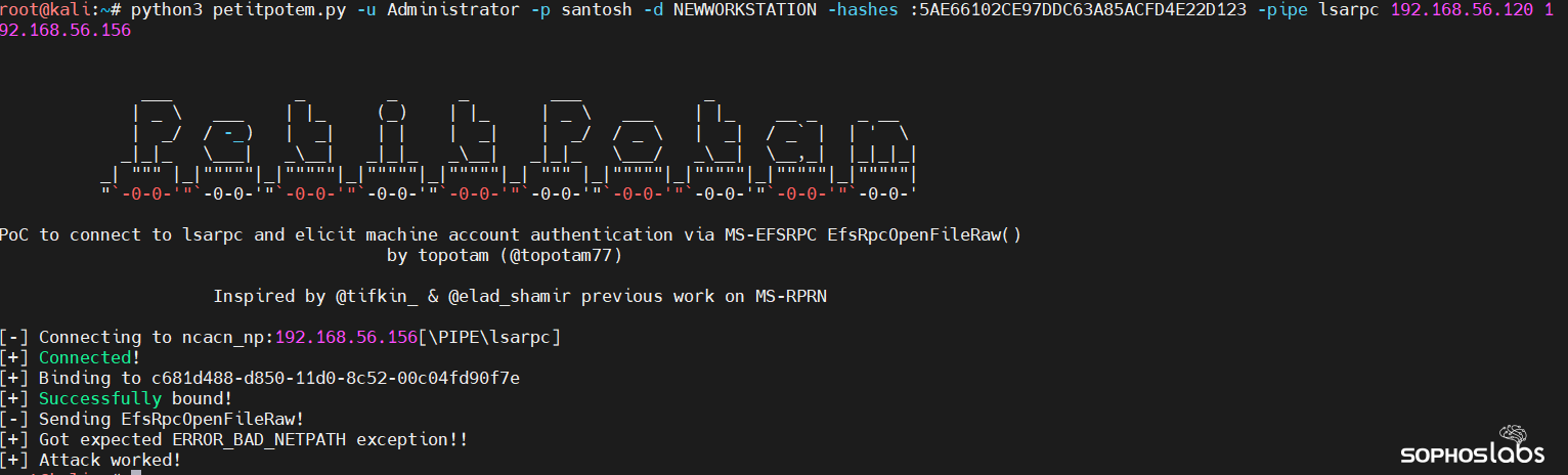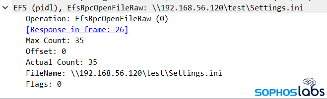 - Force the server to initiate NTLM authentication to another computer, using the MS-EFSRPC API command EfsRpcOpenFileRaw