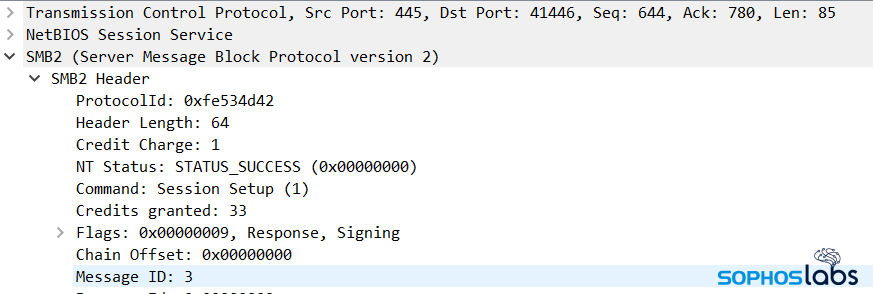Once the attacker machine (A) sends the bind request, it receives in response a bind Ack from Machine B with STATUS_SUCCESS if it’s successful.