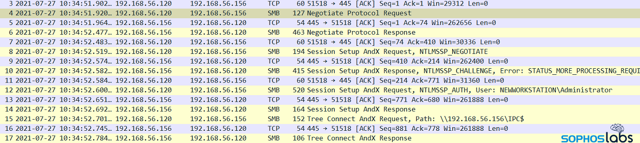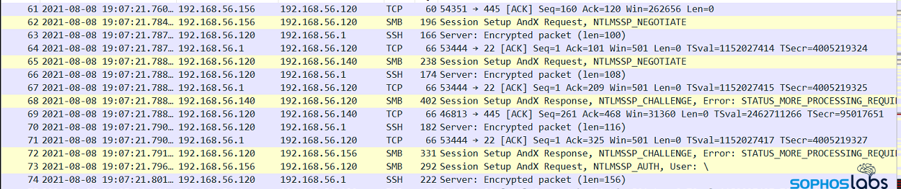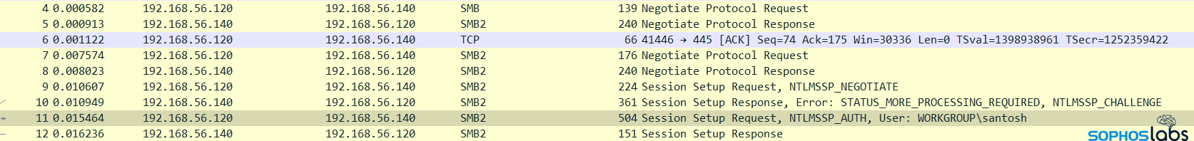 In the packet capture screenshot below, you can see two NTLM_NEGOTIATE and NTLM_CHALLENGE requests. One is received from the client machine, and the other is the same packet that the attacker machine relays to the server.