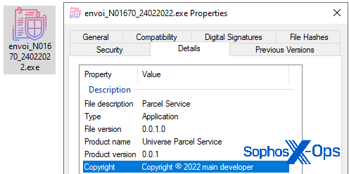 One of the files that had been uploaded to VirusTotal was an Electron app – basically, a set of JavaScript instructions designed to run inside a stripped-down version of the Chromium browser. Not only was this app’s filename (delivery_N03041_07042022.exe) very similar to the one recorded in the logs in this incident(sendung_N03012_16092022.com) and one we serendipitously discovered from a third incident (envoi_N01670_24022022.exe), but the temporary directory it creates to store its running files includes the entire, identical Notepad++ program directory we discovered on the target’s computer.