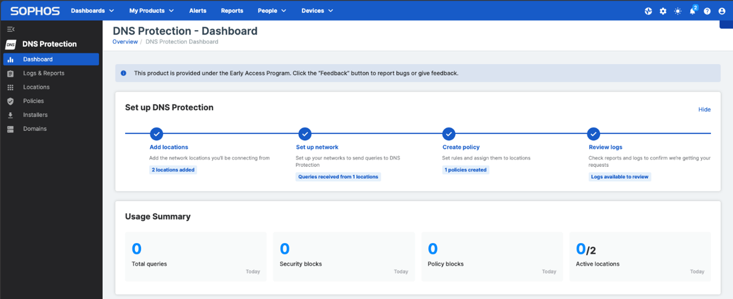 さらに、Sophos DNS Protection のログデータとインテリジェンスは Sophos のデータレイクと共有され、Sophos XDR と MDR の脅威ハンティングアナリストがネットワーク上で活動中の攻撃者や脅威を検出するのに役立ちます。EAP の進展に伴い、XDR との統合に関する追加アップデートも予定しています。