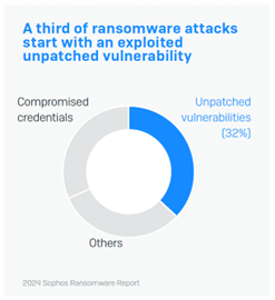 ソフォスの「ランサムウェアの現状レポート 2024 年版」で報告したように、パッチが適用されていない脆弱性の悪用は、攻撃を成功させる主要な根本原因となっています。
