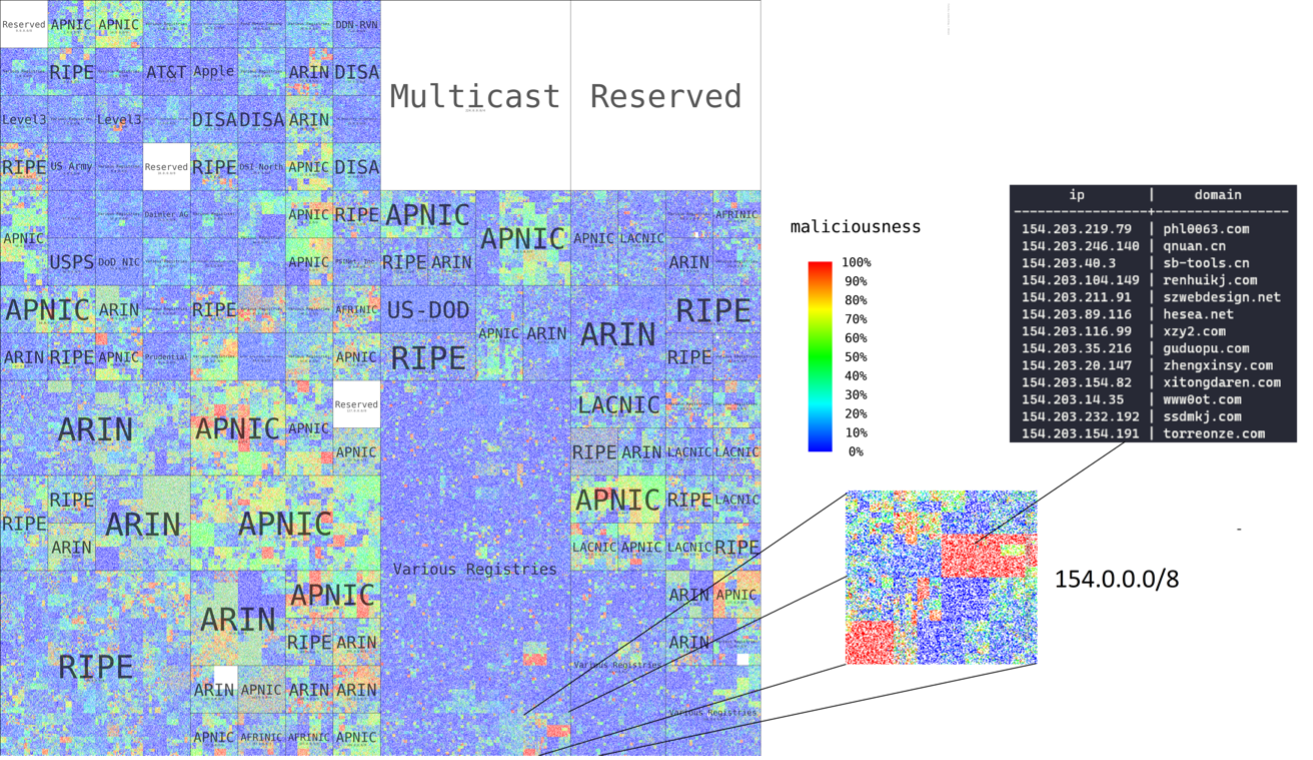 Using these models, they visualized the IP space more clearly and found groups of malicious IPs, regardless of any “cool-down” periods over time. Using a data-driven AI model to assign these IPs to a cluster of either benign or malicious activity allows better detection of never-before-seen IPs.