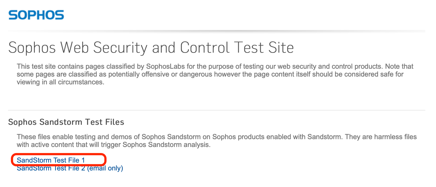 There’s a convenient and harmless test file you can find at SophosTest.com, which will provide a sample report for you to review.