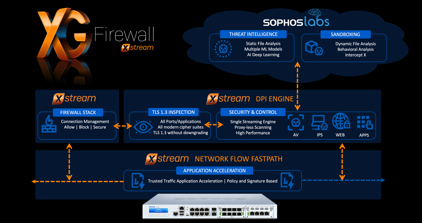 XG Firewall v18 includes new machine learning (ML) based threat intelligence and a newly enhanced version of Sandstorm sandboxing, which work together to identify the latest zero-day threats. Both are powered by SophosLabs Intelix, which uses machine learning technology, decades of threat research, and petabytes of intelligence to provide unmatched protection against new and previously unseen threats.