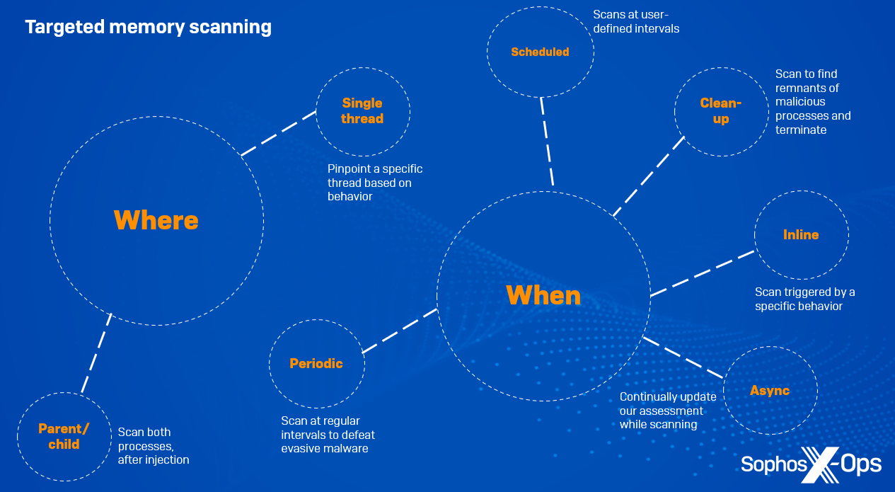 上述の通り、ソフォスは長期にわたって対応を続けています。脅威の状況が変化し、進化するにつれて、お客様を脅威から保護するために技術を適応させ続けてきました。その一方で、パフォーマンスのオーバーヘッドを最小限に抑え、詳細な保護を提供するため、さまざまな種類のスキャンに冗長性を組み込んできました。これらは、ソフォスのメモリスキャン機能の中心的な考え方であり、最近の研究にもこの考え方が反映されています。