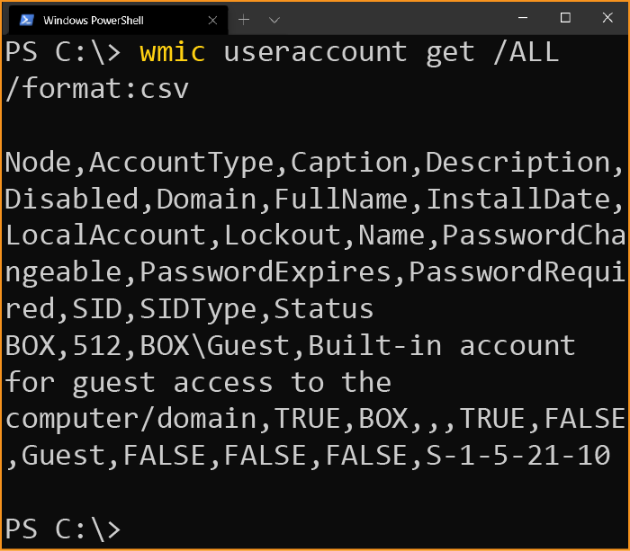 wmic useraccount get /ALL /format:csv